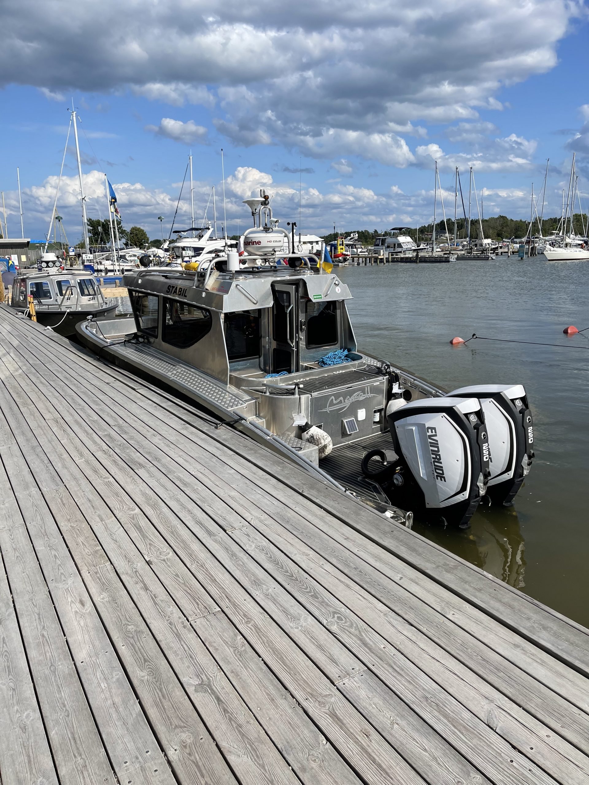STABIL har hög nivå av navigationsutrustning och marinelektronik. Utrustad med extra diesel och bensin, ankare mm. Vi klarar enklare reparationer av el- eller motorproblem till sjöss. Behövs dykare finns möjlighet att ombesörja detta. Ombord finns också brandutrustning, första hjälpen samt HLR hjärtstartare